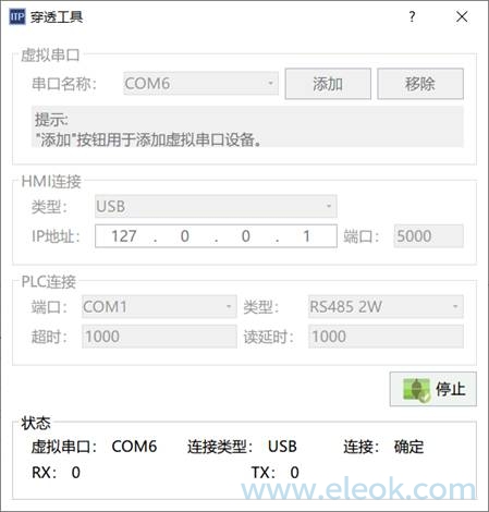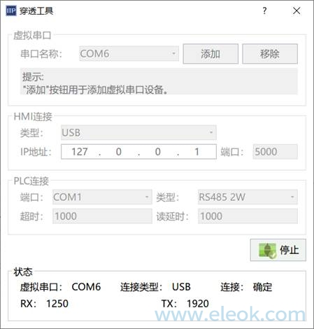 穿透发送和接受的数据量可以在HMI软件穿透工具界面中进行查看。