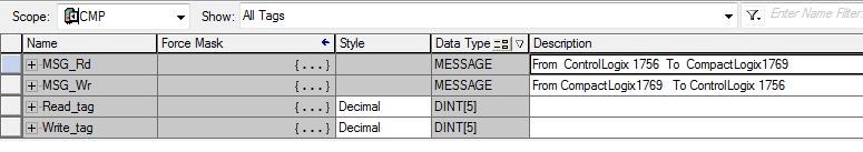 (2) MSG_Wr,数据类型MESSAGE,把数据写到1769-L33ERM的通信指令结构体.