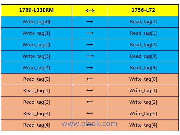 (4) Write_tag,数据类型DINT[5],把这五个数据发送到1756-L72.